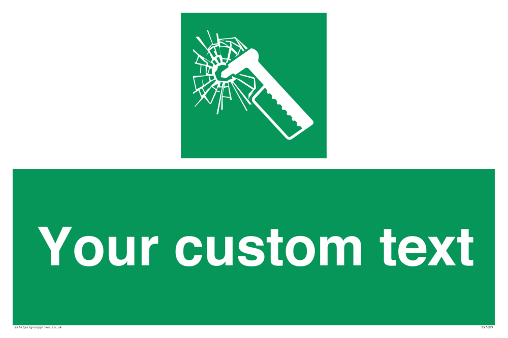 Suitable for mounting on a flat surface. Suitable for mounting on a door. Suitable for mounting on cladding. This product is design to be mounted on the ceiling. Custom signs contain the text required by the customer. With your your text and a standard safety sign symbol - a bespoke sign can fit any requirement.