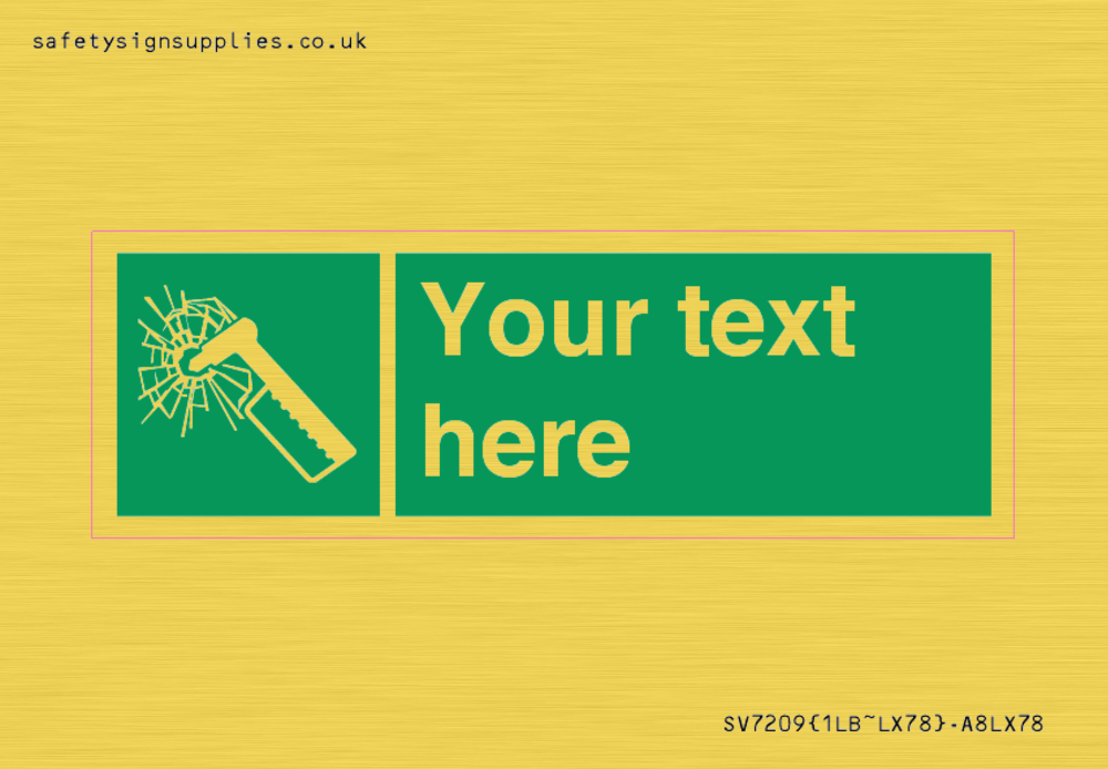 Durability: 3-5 years Mounting Surface: door Materials: Sticker Material Colour: Gold Custom Text: Yes Language: ENGLISH Language (EN) Symbol: E025 : Emergency hammer Internal Layout: 1LB : 1 letterbox pod in a Letterbox Cut Configuration: 60x20mm Rectangle(s) Region: UK