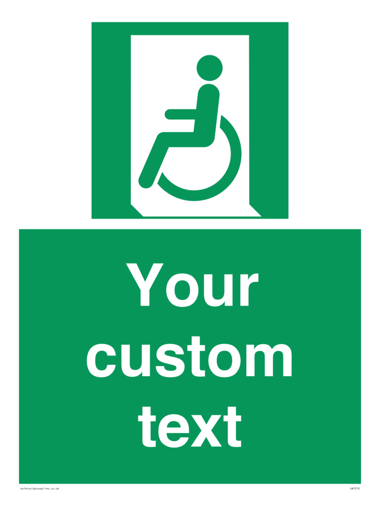 Function: To indicate an escape route to a place of safety usable by people unable to walk or with walking impairment.