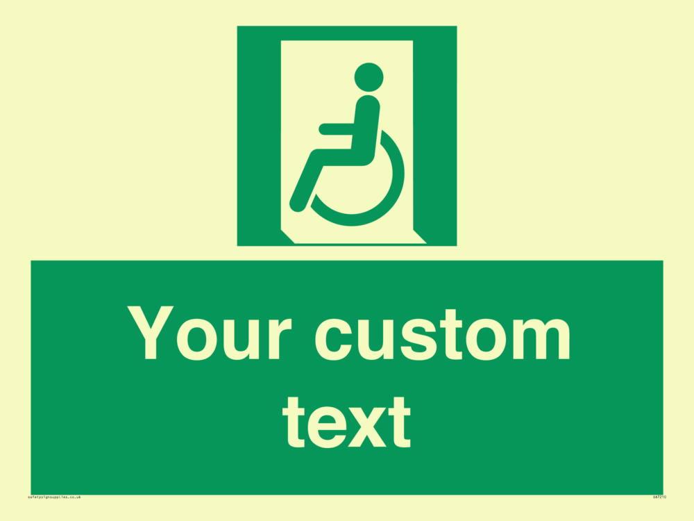 Function: To indicate an escape route to a place of safety usable by people unable to walk or with walking impairment.