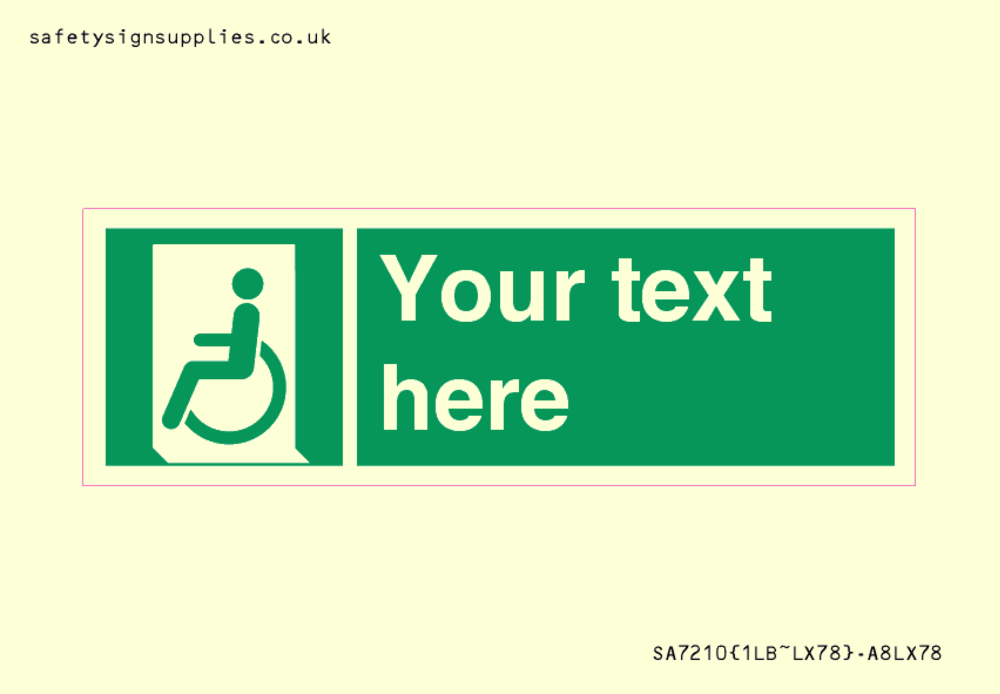 Mounting Surface: Window / Glass Materials: Sticker Material Colour: Glow in the Dark Custom Text: Custom Export Language: ENGLISH Language (EN) Symbol: E026 : Emergency exit for people unable to walk or with walking impairment (left) Internal Layout: 1LB : 1 letterbox pod in a Letterbox Cut Configuration: 60x20mm Rectangle(s) Region: UK