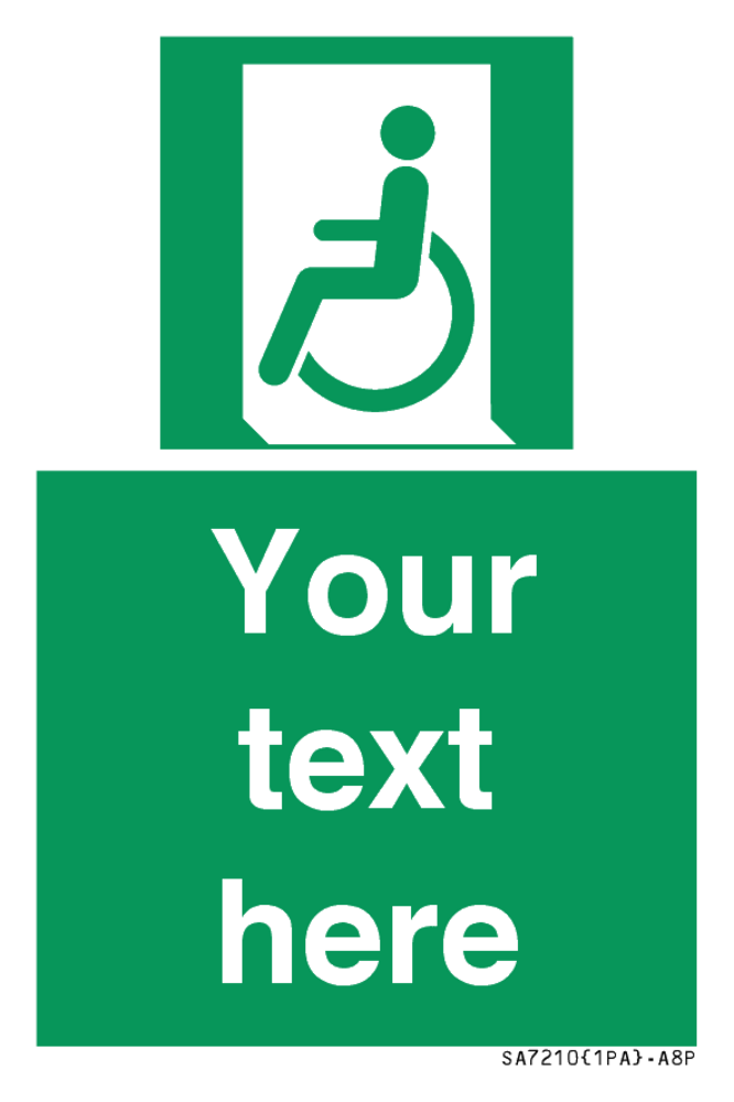 Function: To indicate an escape route to a place of safety usable by people unable to walk or with walking impairment.