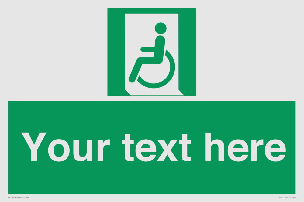 Function: To indicate an escape route to a place of safety usable by people unable to walk or with walking impairment.