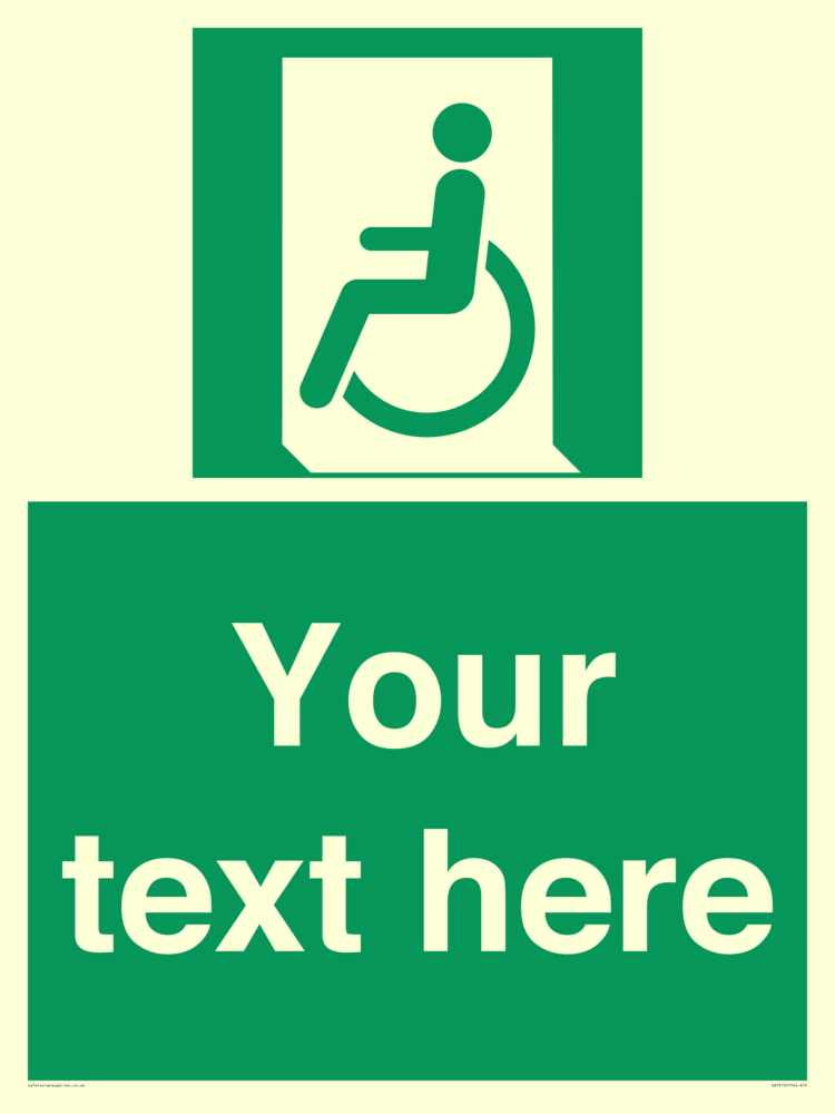 Function: To indicate an escape route to a place of safety usable by people unable to walk or with walking impairment.