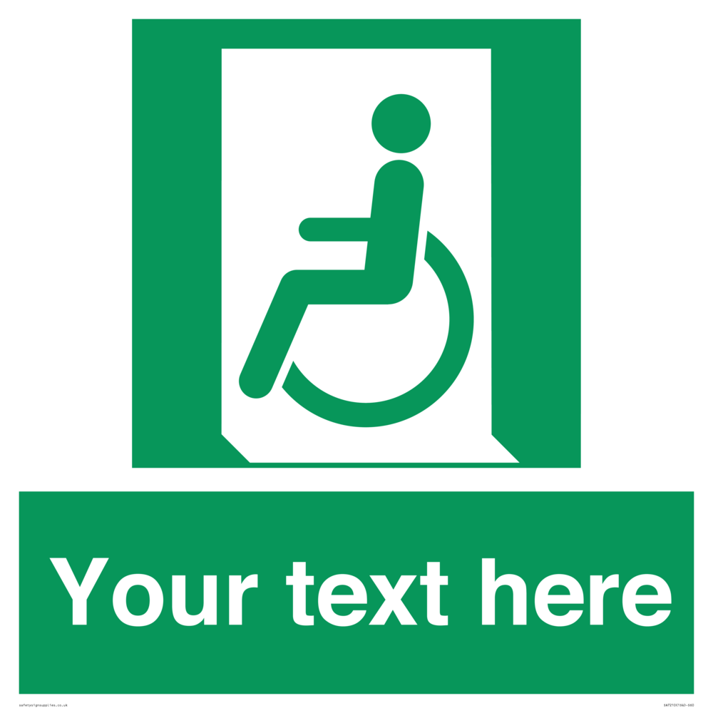 Function: To indicate an escape route to a place of safety usable by people unable to walk or with walking impairment.