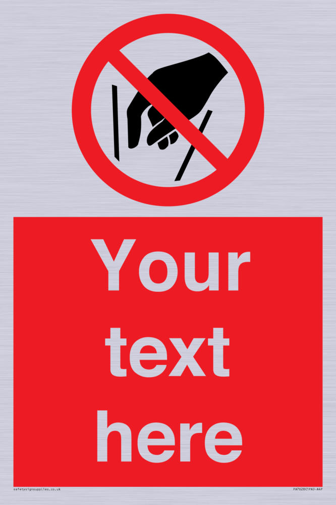 Suitable for hanging installation. Suitable for mounting on a flat surface. Suitable for mounting on a door. Custom signs contain the text required by the customer. With your your text and a standard safety sign symbol - a bespoke sign can fit any requirement. Signs in this range are from our standard range.