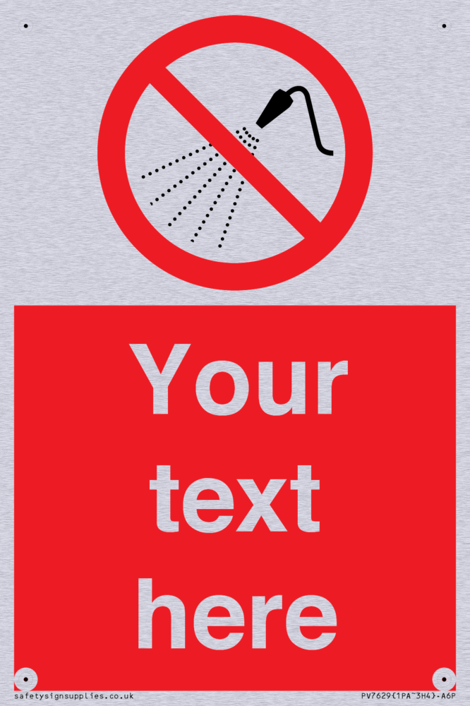 Custom prohibition Do not spray with water Sign