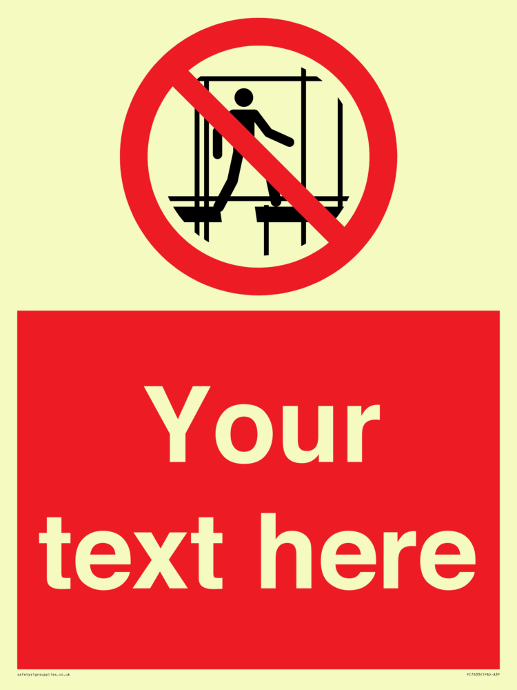 Suitable for mounting on a door. Suitable for mounting on cladding. This product is design to be mounted on the ceiling. Custom signs contain the text required by the customer. With your your text and a standard safety sign symbol - a bespoke sign can fit any requirement. Signs in this range are from our standard range.