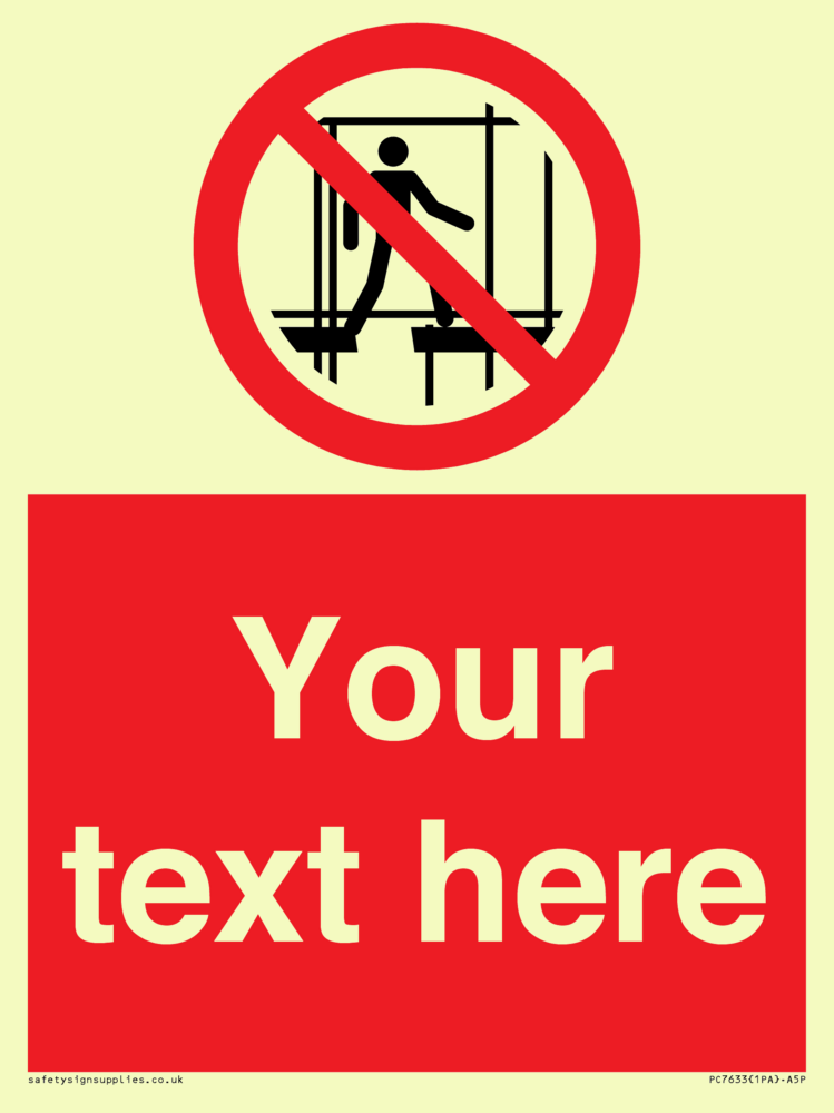 Suitable for mounting on a door. Suitable for mounting on cladding. This product is design to be mounted on the ceiling. Custom signs contain the text required by the customer. With your your text and a standard safety sign symbol - a bespoke sign can fit any requirement. Signs in this range are from our standard range.