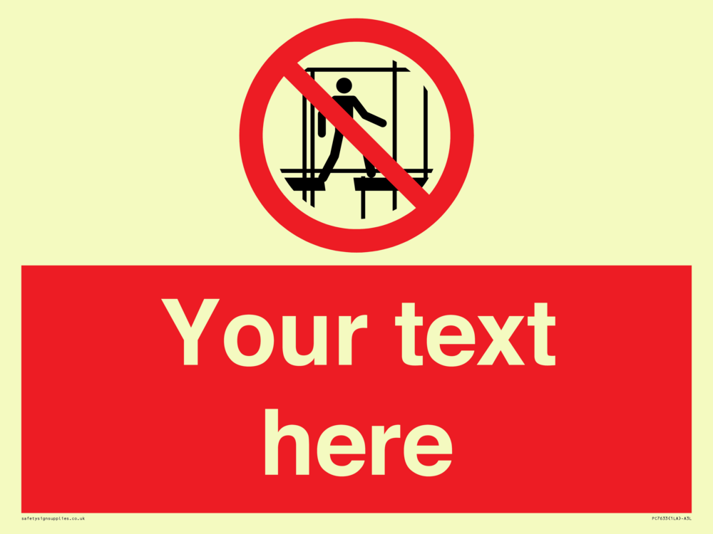 Suitable for mounting on a door. Suitable for mounting on cladding. This product is design to be mounted on the ceiling. Custom signs contain the text required by the customer. With your your text and a standard safety sign symbol - a bespoke sign can fit any requirement. Signs in this range are from our standard range.