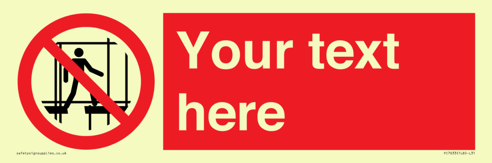 Suitable for mounting on a door. Suitable for mounting on cladding. This product is design to be mounted on the ceiling. Custom signs contain the text required by the customer. With your your text and a standard safety sign symbol - a bespoke sign can fit any requirement. Signs in this range are from our standard range.