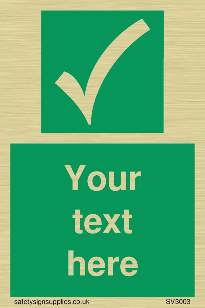 This sign contains a general Safe Condition Symbol - white tick on green background. Suitable for fixing with screws. Suitable for hanging with a premium hanging kit.