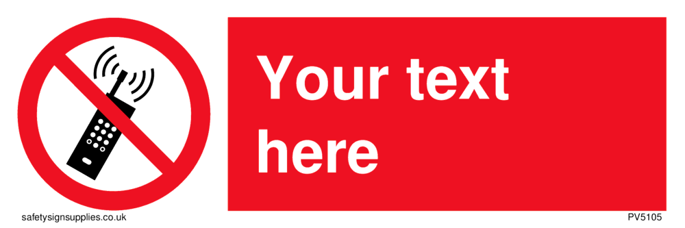 This sign contains a no mobile phones symbol, black mobile phone with red prohibition circle with diagonal line crossed through.