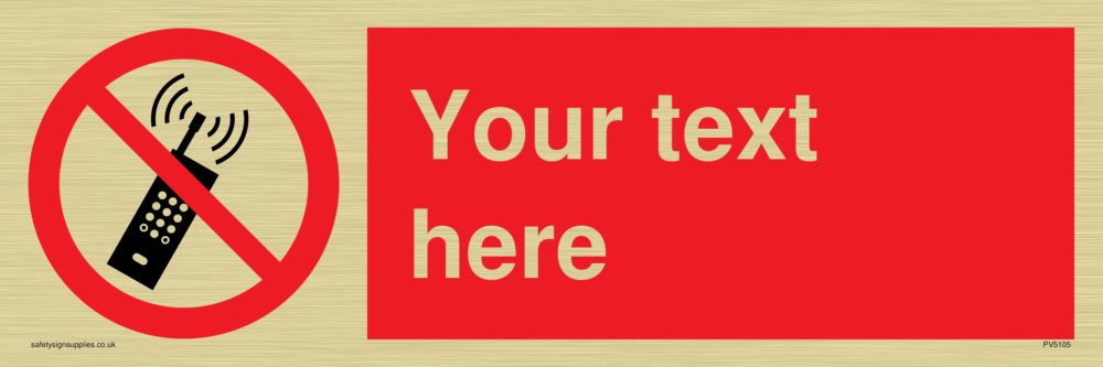 This sign contains a no mobile phones symbol, black mobile phone with red prohibition circle with diagonal line crossed through.