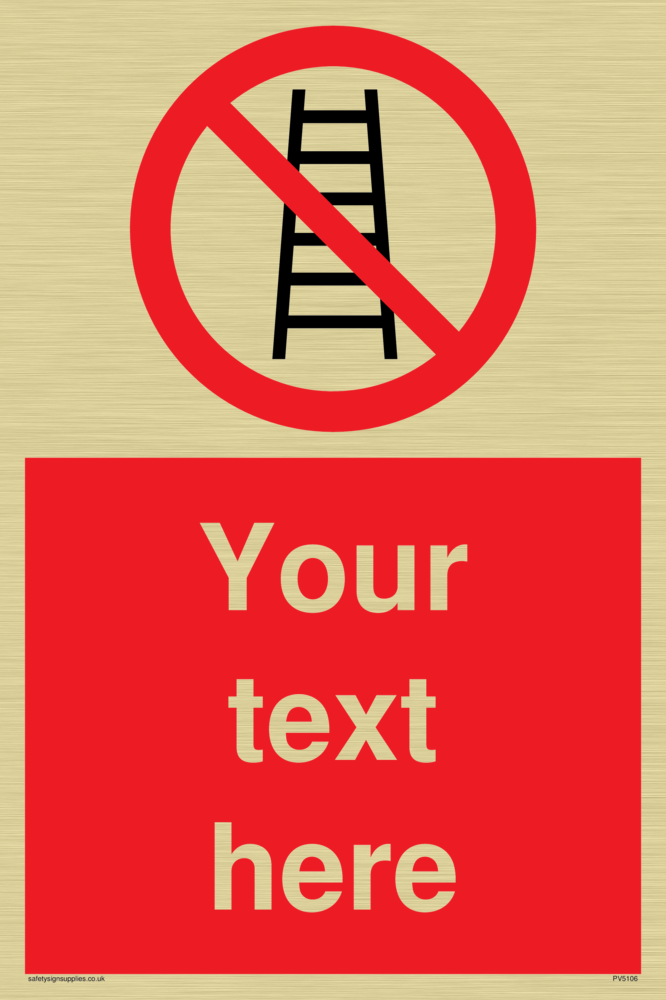 This sign shows a No Ladders systems. Suitable for fixing with screws. Suitable for hanging with a premium hanging kit.