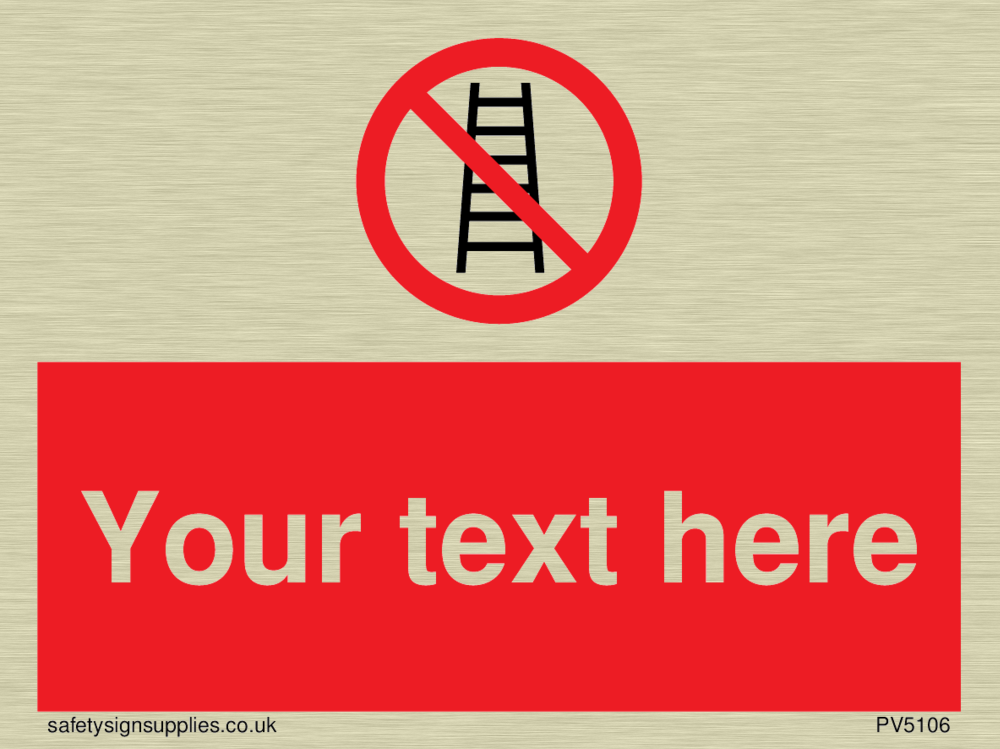 This sign shows a No Ladders systems. Suitable for fixing with screws. Suitable for hanging with a premium hanging kit.