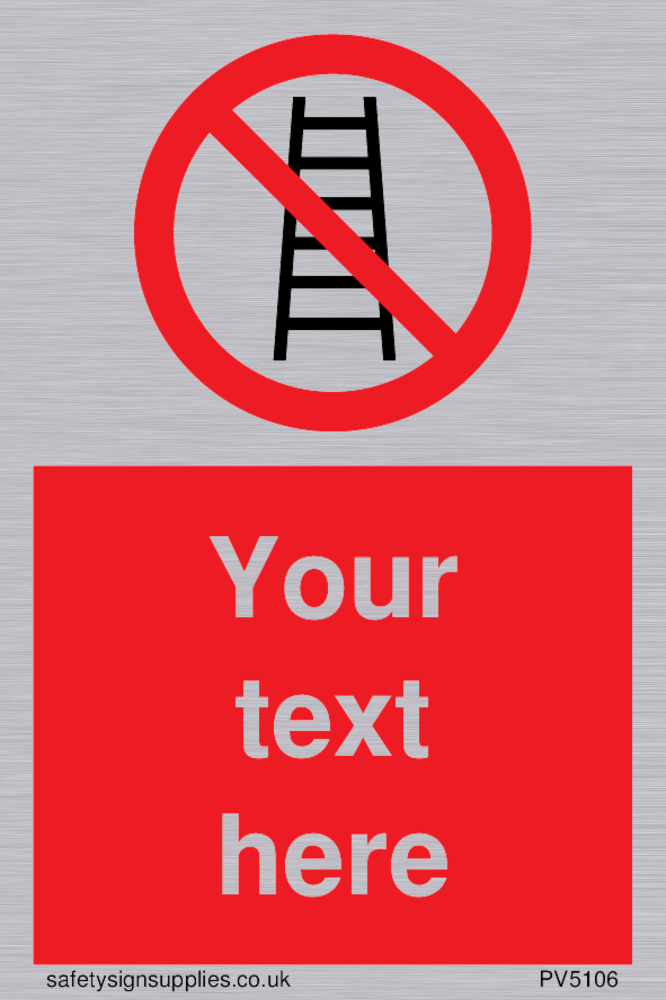 This sign shows a No Ladders systems. Suitable for fixing with screws. Suitable for hanging with a premium hanging kit.