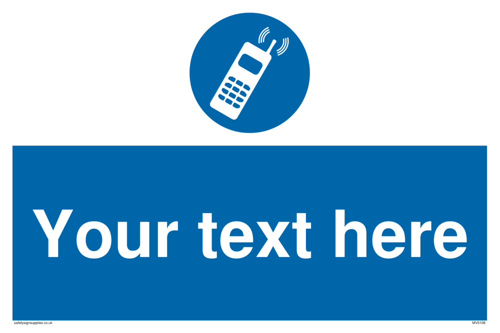 This sign shows a mandatory mobile sign. It shows a mobile phone symbol and is used in signs were you want to give people a specific instruction regarding their mobile phone. For Example if mobile phones must be switched off or switched to silent/airplane mode.