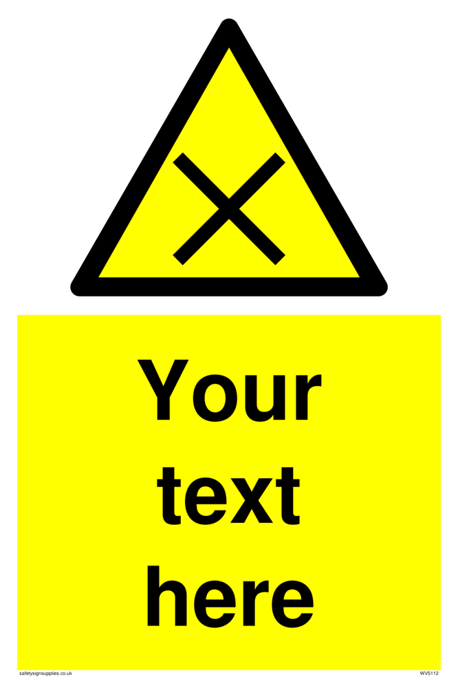 Custom signs contain the text required by the customer. With your your text and a standard safety sign symbol - a bespoke sign can fit any requirement.