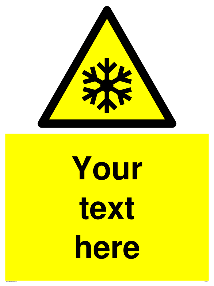 This signs contains a low temperature warning symbol. Snowflake symbol in black