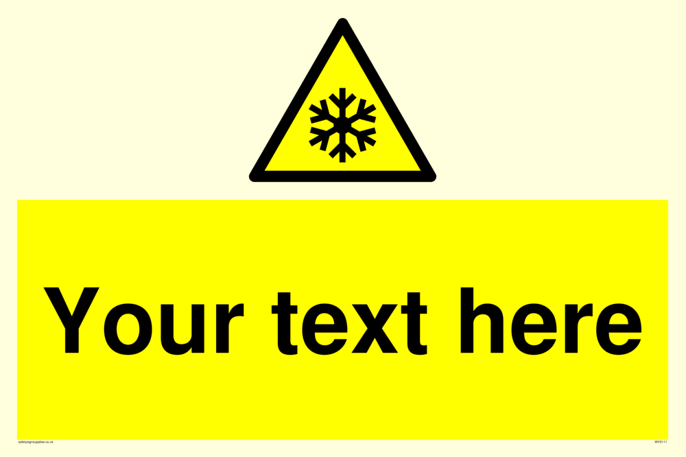 This signs contains a low temperature warning symbol. Snowflake symbol in black