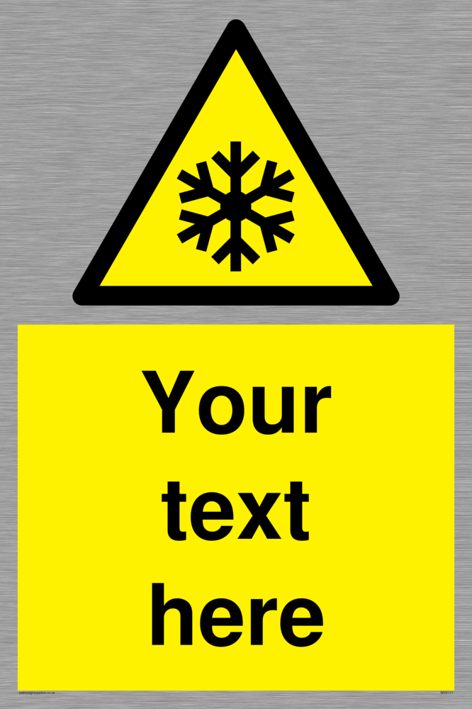 This signs contains a low temperature warning symbol. Snowflake symbol in black