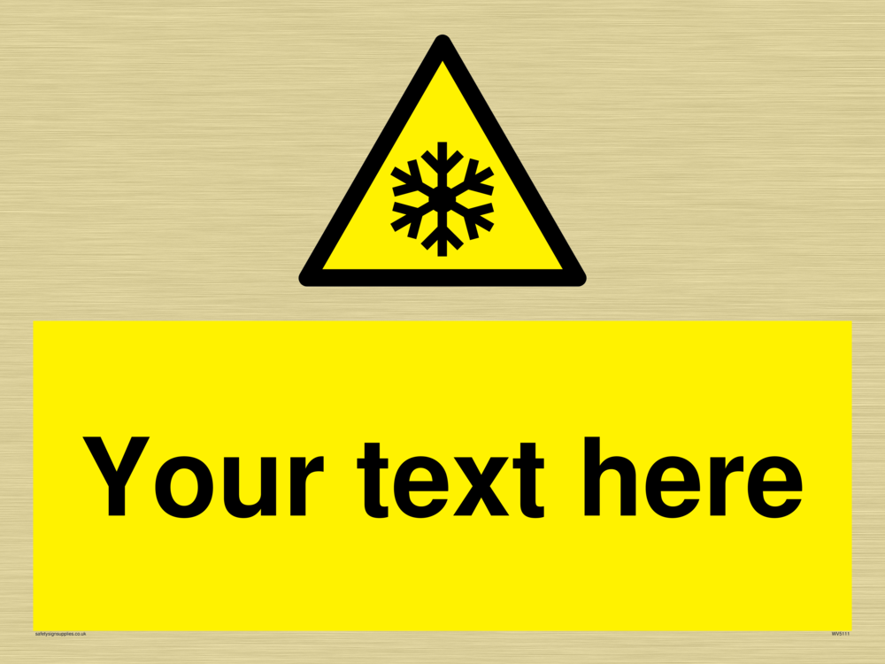 This signs contains a low temperature warning symbol. Snowflake symbol in black