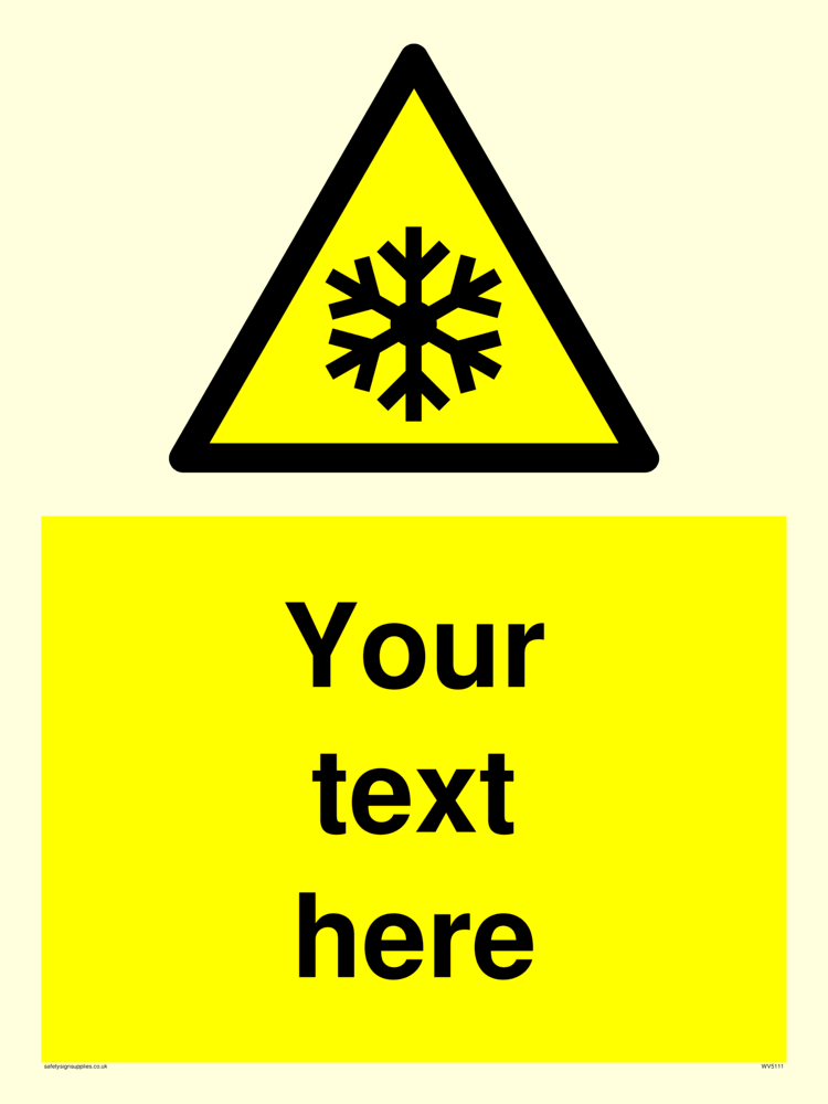 This signs contains a low temperature warning symbol. Snowflake symbol in black