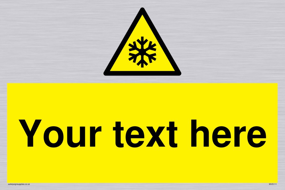 This signs contains a low temperature warning symbol. Snowflake symbol in black