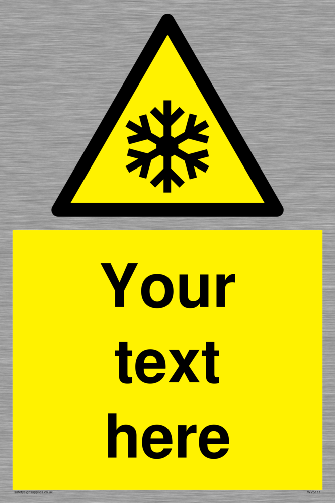This signs contains a low temperature warning symbol. Snowflake symbol in black