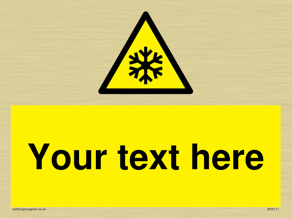 This signs contains a low temperature warning symbol. Snowflake symbol in black