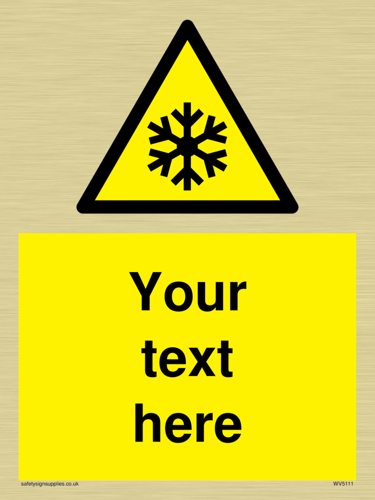This signs contains a low temperature warning symbol. Snowflake symbol in black