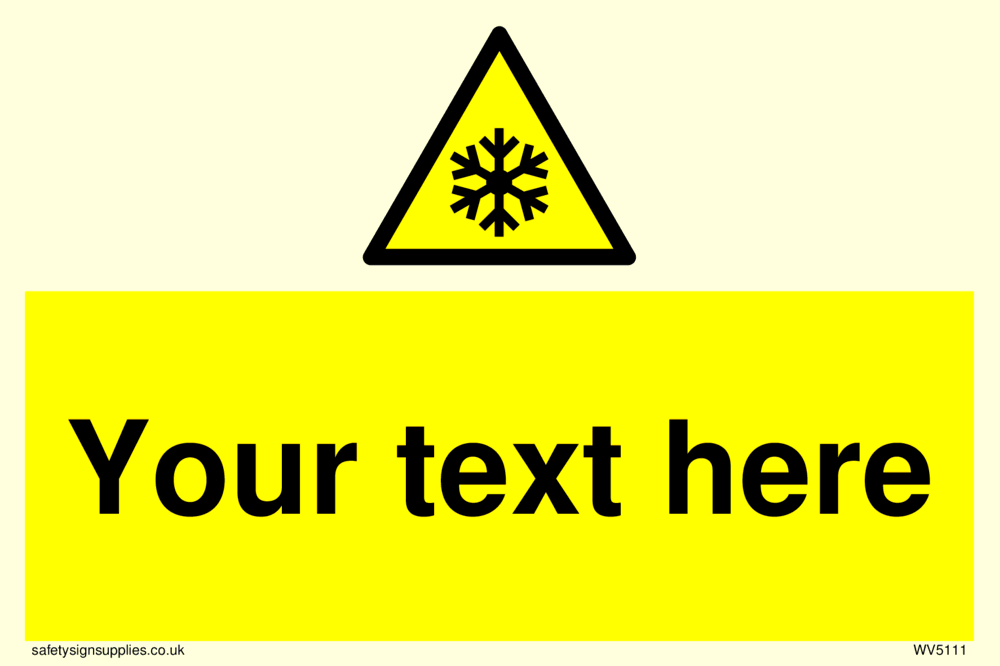 This signs contains a low temperature warning symbol. Snowflake symbol in black