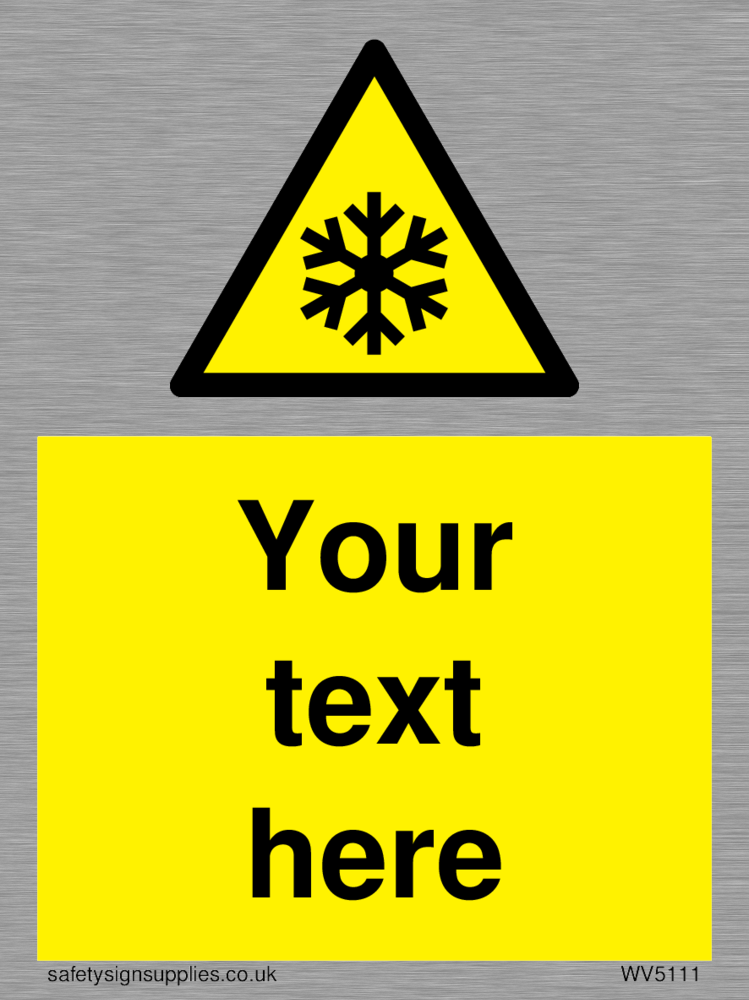 This signs contains a low temperature warning symbol. Snowflake symbol in black