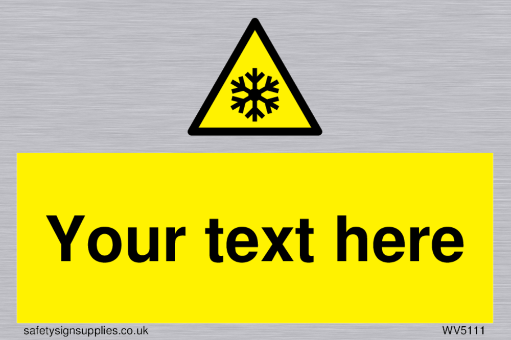 This signs contains a low temperature warning symbol. Snowflake symbol in black