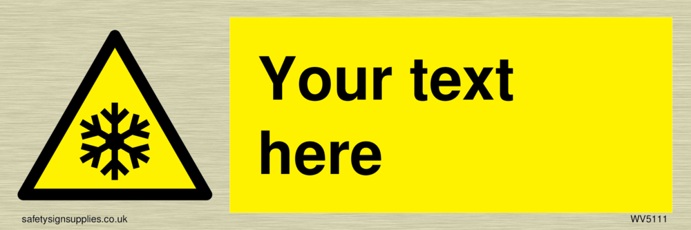 This signs contains a low temperature warning symbol. Snowflake symbol in black
