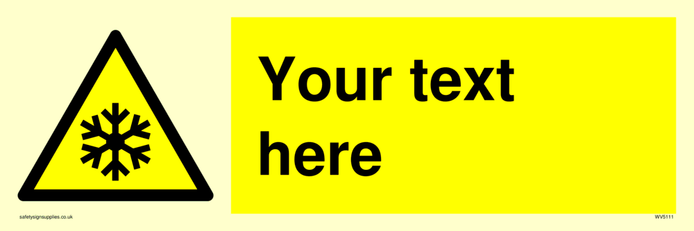 This signs contains a low temperature warning symbol. Snowflake symbol in black