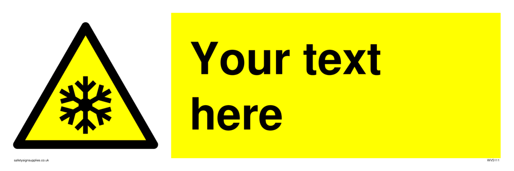 This signs contains a low temperature warning symbol. Snowflake symbol in black