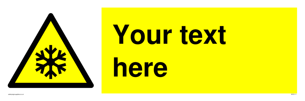 This signs contains a low temperature warning symbol. Snowflake symbol in black