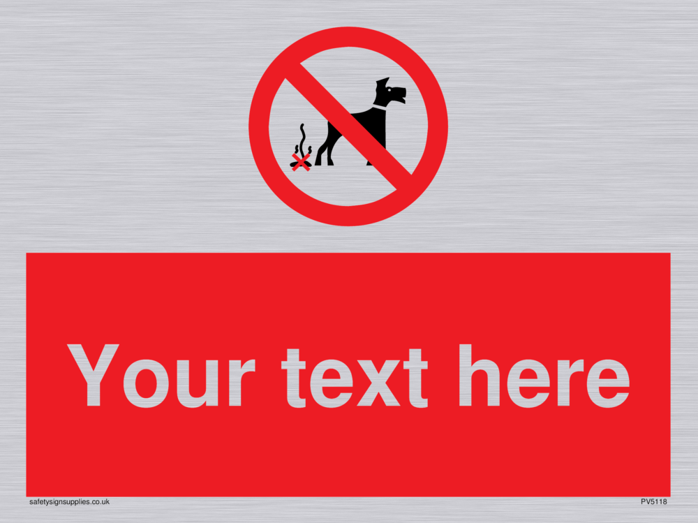 Custom No Dog Fouling Sign. Add your own custom text. Normal delivery times apply. Red No Dog Fouling Symbol. This symbol and sign layout complies with new EN7010 legislation that governs safety signs.