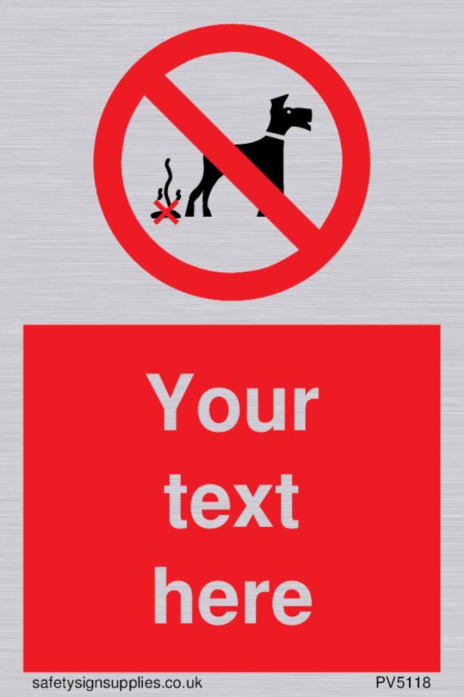 Custom No Dog Fouling Sign. Add your own custom text. Normal delivery times apply. Red No Dog Fouling Symbol. This symbol and sign layout complies with new EN7010 legislation that governs safety signs.