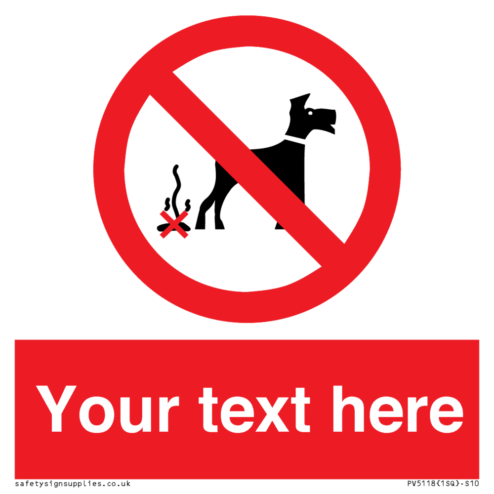 Custom No Dog Fouling Sign. Add your own custom text. Normal delivery times apply. Red No Dog Fouling Symbol. This symbol and sign layout complies with new EN7010 legislation that governs safety signs.