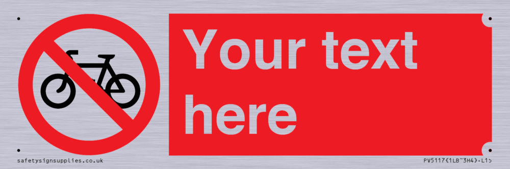 Sign Text: Your text here Product Type: Prohibition Safety Signs Dimensions: 150x50mm Material: Grained Silver Aluminium Text Colour: White Background Colour: Red More...