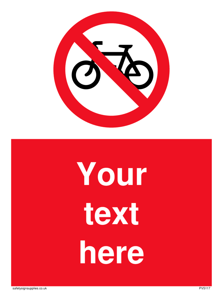 This sign contains a no cycling symbol - bicycle in black with red circle crossed through.