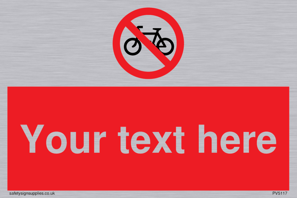 This sign contains a no cycling symbol - bicycle in black with red circle crossed through.