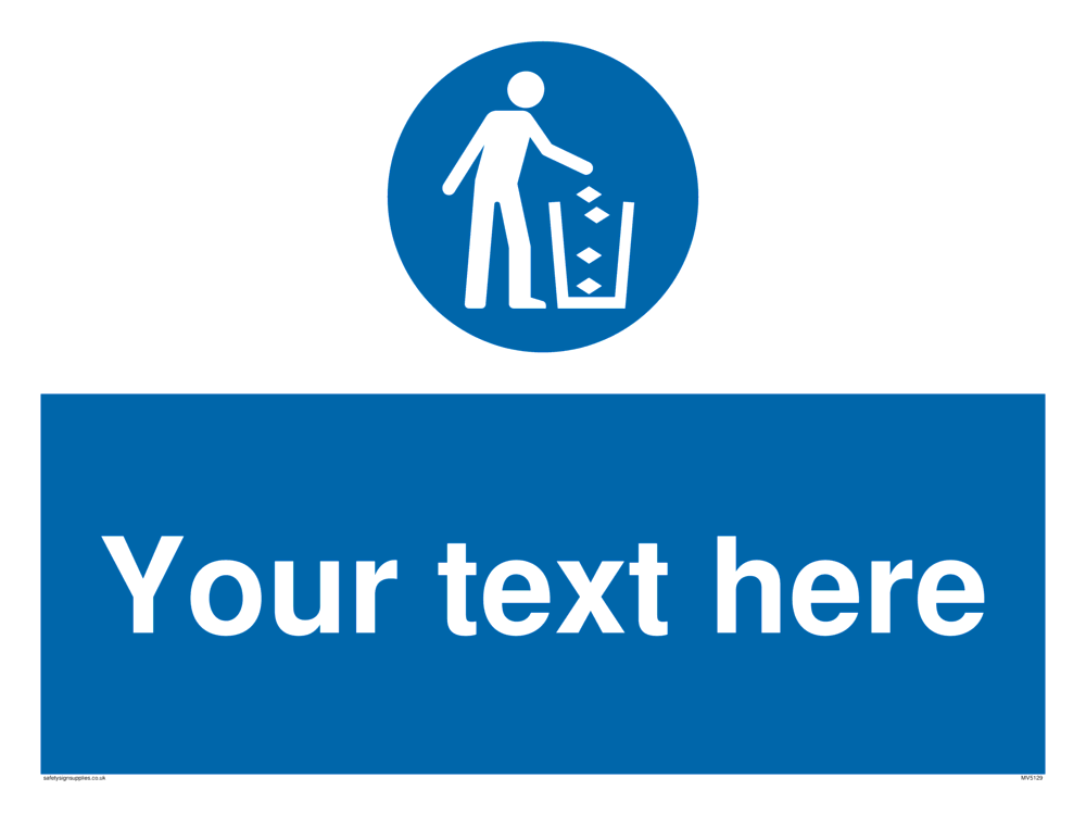This sign contains a litter symbol. Used to tell people how to dispose of litter or rubbish. Often used for signs telling people to throw away their garbage.