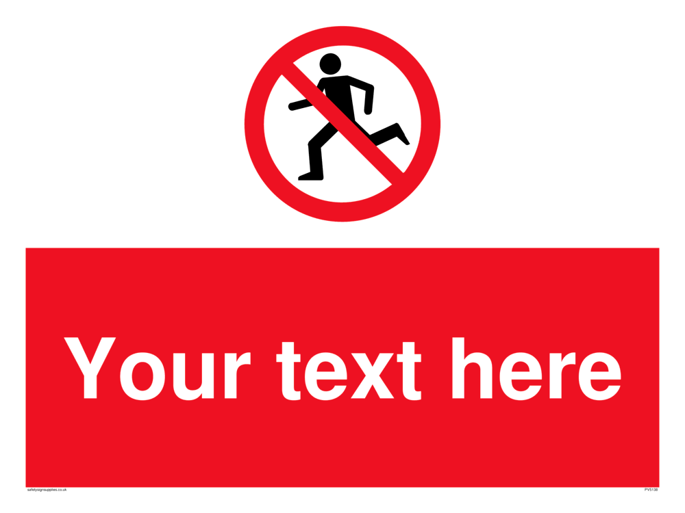 Suitable for mounting on a flat surface. Suitable for mounting on a door. Suitable for mounting on cladding. This product is design to be mounted on the ceiling. Custom signs contain the text required by the customer. With your your text and a standard safety sign symbol - a bespoke sign can fit any requirement.