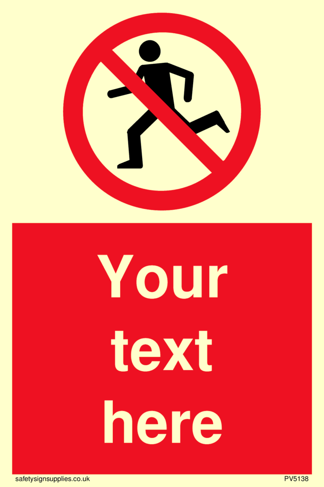 Suitable for mounting on a door. Suitable for mounting on cladding. This product is design to be mounted on the ceiling. Custom signs contain the text required by the customer. With your your text and a standard safety sign symbol - a bespoke sign can fit any requirement.
