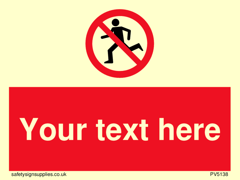 Suitable for mounting on a door. Suitable for mounting on cladding. This product is design to be mounted on the ceiling. Custom signs contain the text required by the customer. With your your text and a standard safety sign symbol - a bespoke sign can fit any requirement.