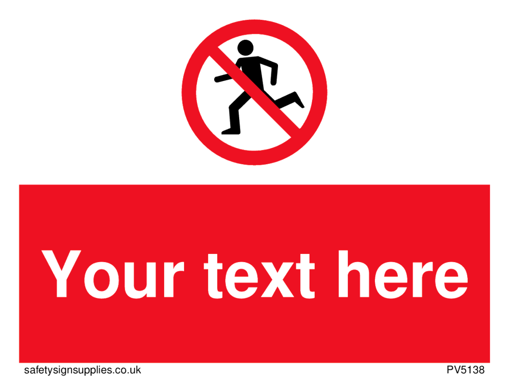 Suitable for mounting on a flat surface. Suitable for mounting on a door. Suitable for mounting on cladding. This product is design to be mounted on the ceiling. Custom signs contain the text required by the customer. With your your text and a standard safety sign symbol - a bespoke sign can fit any requirement.